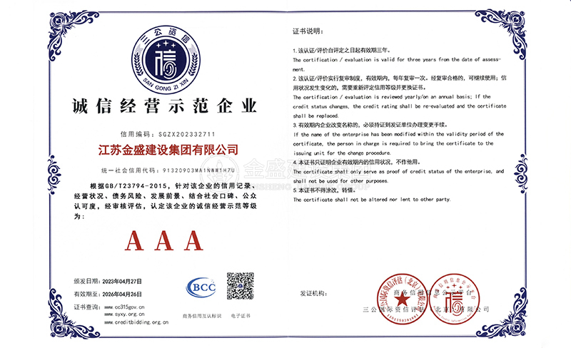 • 3A級資信等級證書