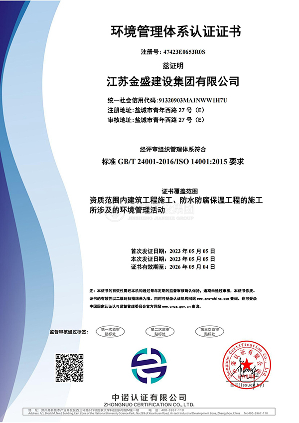 • 環境管理體系認證證書